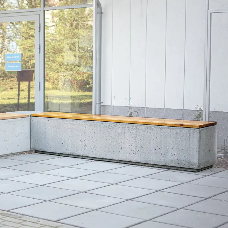 Siedziska betonowe mogą być wykorzystywane jako samodzielne elementy lub część większej kompozycji – z donicami, leżakami, murkami czy stolikami – tworząc kompleksową i estetyczną aranżację miejską.